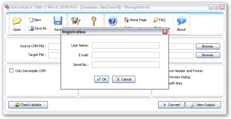 CHM-2-Word is shareware. You can try it before you buy. Please note that the content of some pages are ignored by the unregistered copy of CHM-2-Word. Please enter your registration information into CHM-2-Word in order to use all the features of it.