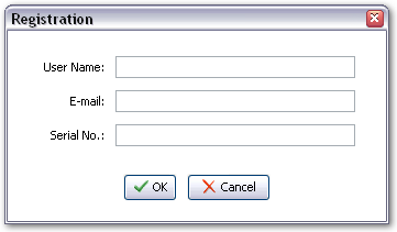 To finish registration, just click the “Register” button on the toolbar, and then enter the correct user name, e-mail address and serial number in the registration dialog, and then click the “Ok” button.
