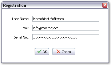 correct user name, e-mail address, serial No. in the registration dialog, and